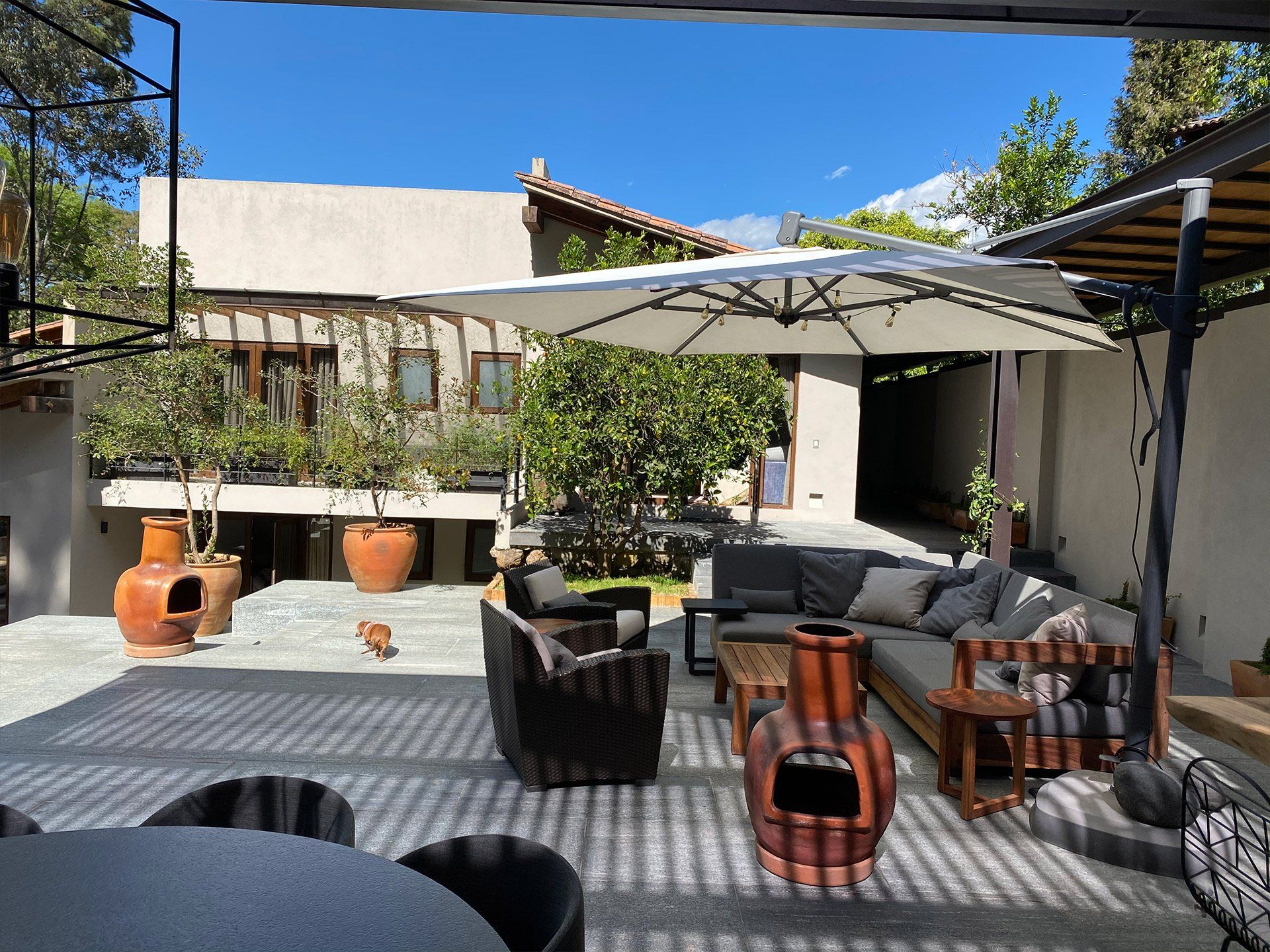 Disfruta de las tardes en la terraza y sala abierta de la casa con vista al jardín y el carril de nado y jacuzzi que estarán a la temperatura ideal para que disfrutes de un delicioso chapuzón en cualquier hora.